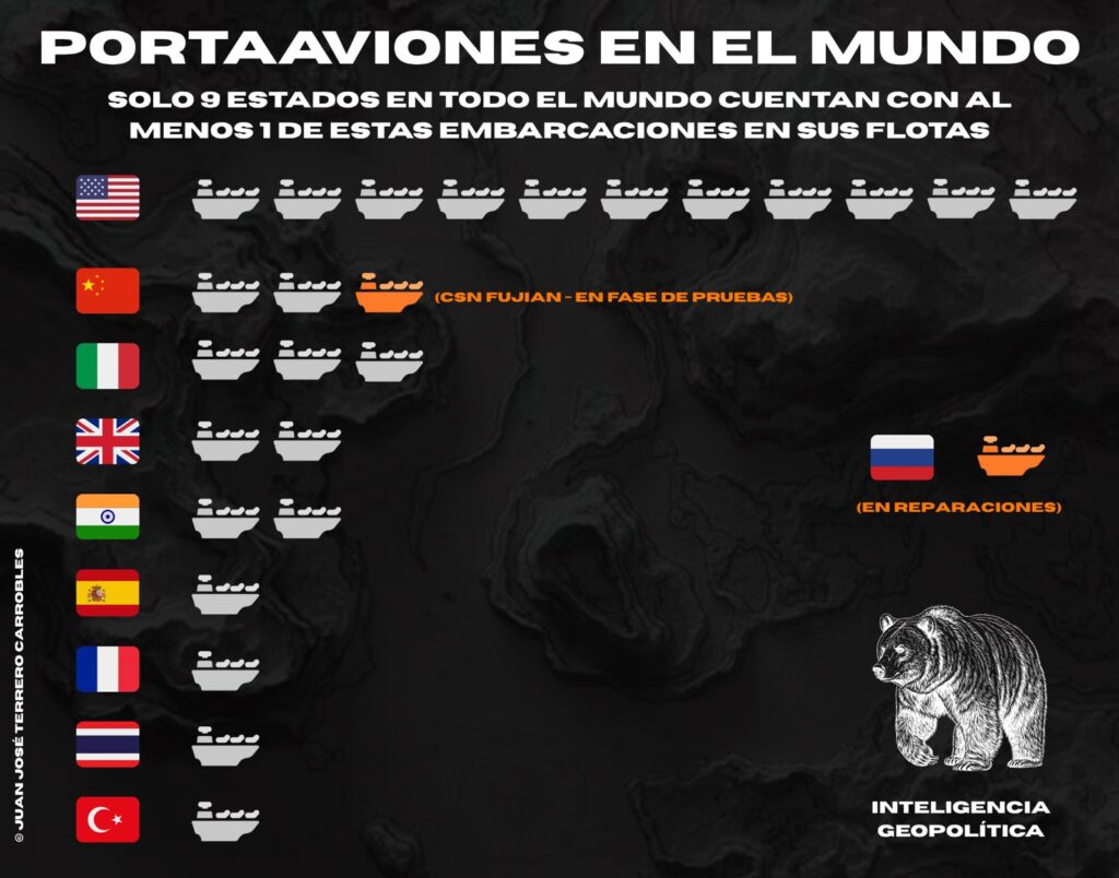 ¿Son China y EE. UU. los únicos Estados que tienen portaaviones? A día hoy existen en torno a 23 portaaeronaves operativos en todo el mundo, manejados correspondientemente entre nueve Estados. Sin embargo, no todos ellos tienen una cantidad semejante ni los mismos recursos tecnológicos que están implementando tanto estadounidenses como chinos. Aparte de China, solamente Italia posee 3 embarcaciones de esta clase. Por otro lado, tanto India como Reino Unido tienen dos portaaviones operativos cada uno. A su vez, España, Francia, Tailandia y Turquía pertenecen al grupo de Estados que tienen un portaaviones en sus respectivas fuerzas marítimas. Rusia también tiene un portaaviones, el Almirante Kuznetsov, aunque en proceso de reparación desde el año 2018.